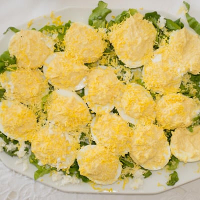 • Gevuld ei gegarneerd met peterselie